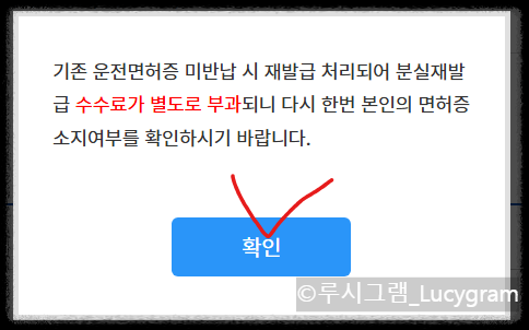 분실하셨다면 전 단계에서 분실하였다고 잘 표기해 주세요. 안내사항을 잘 숙지 후 확인 클릭.