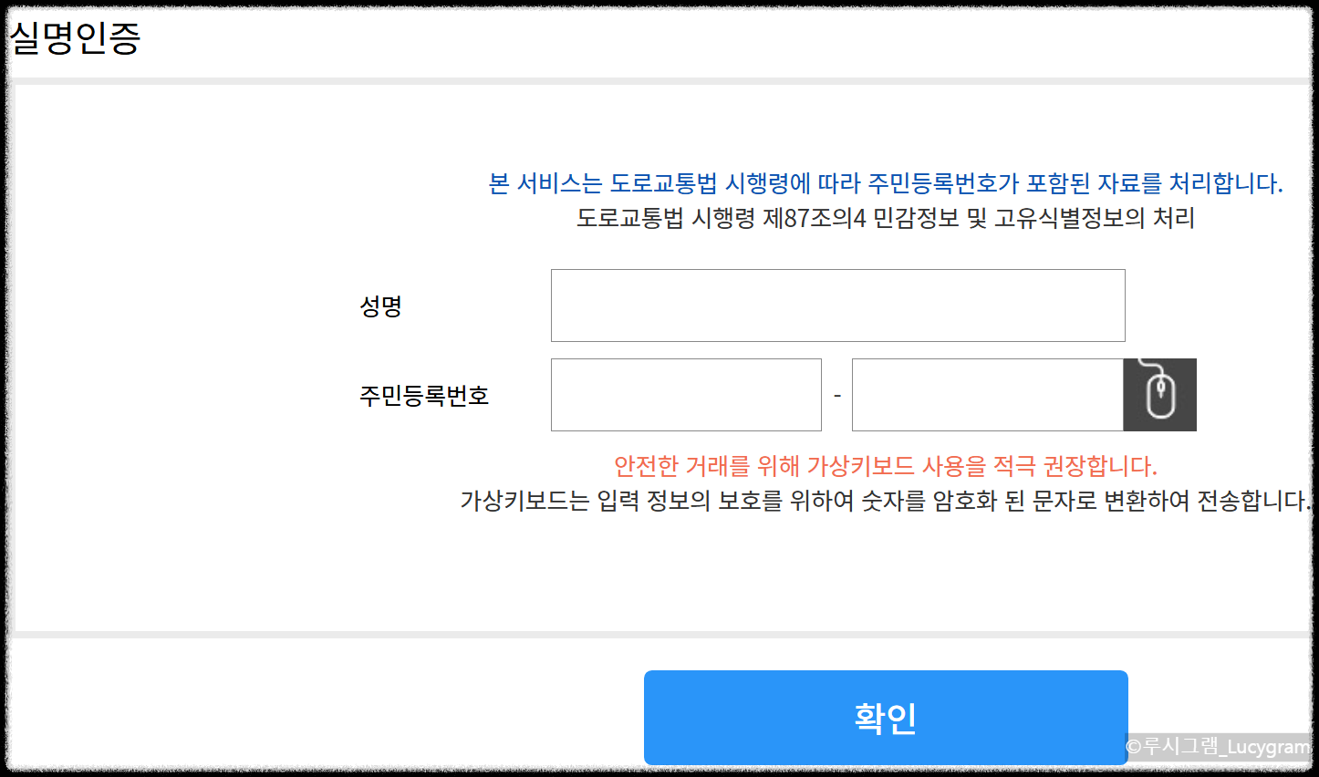 실명인증을 해주세요. 인증완료 후 아래와 같은 창이 나옵니다.