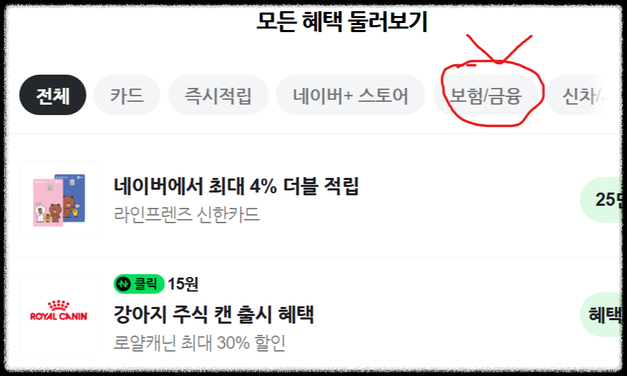 '보험/금융' 클릭