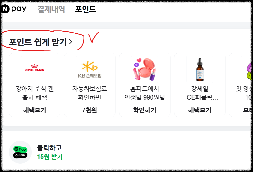 '포인트 쉽게 받기'를 클릭한다.