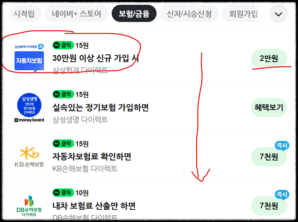 목록 중에 '삼성화재 다이렉트