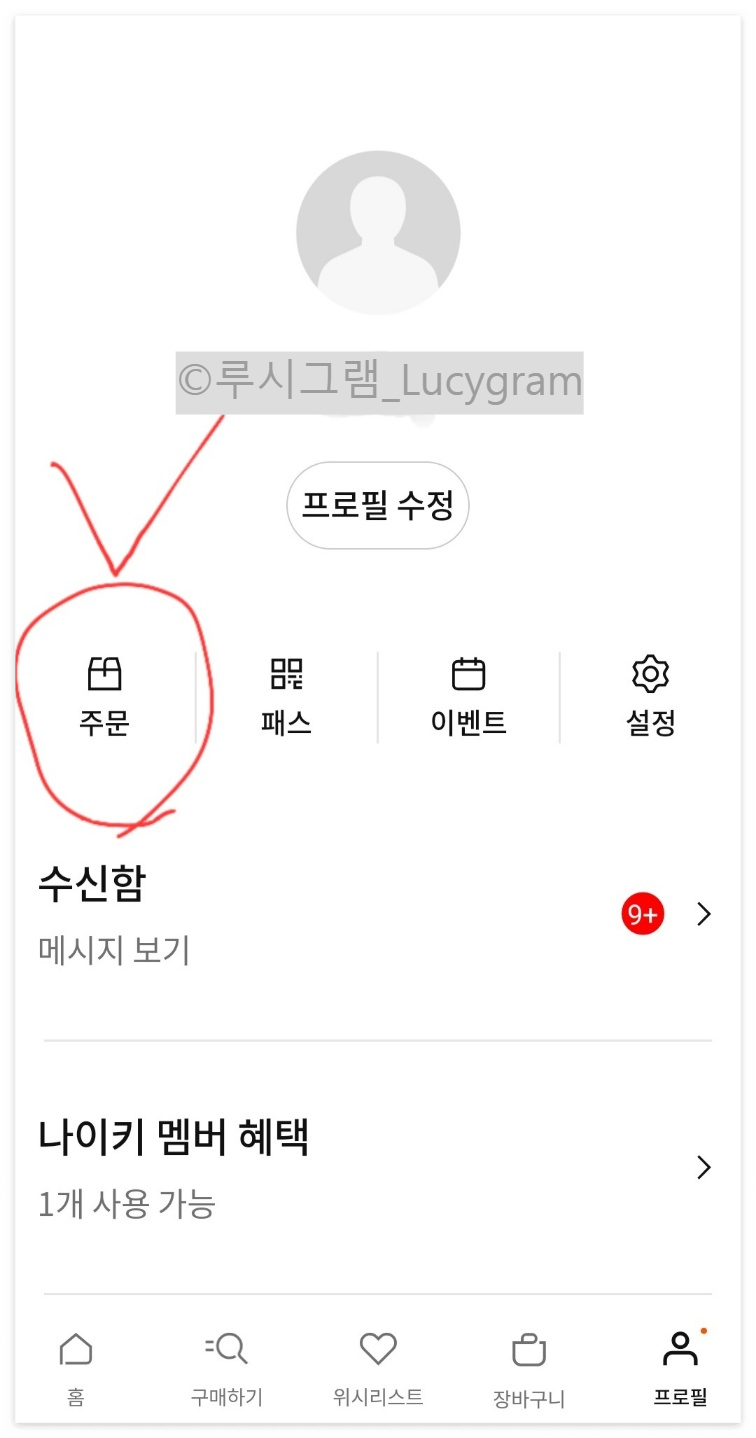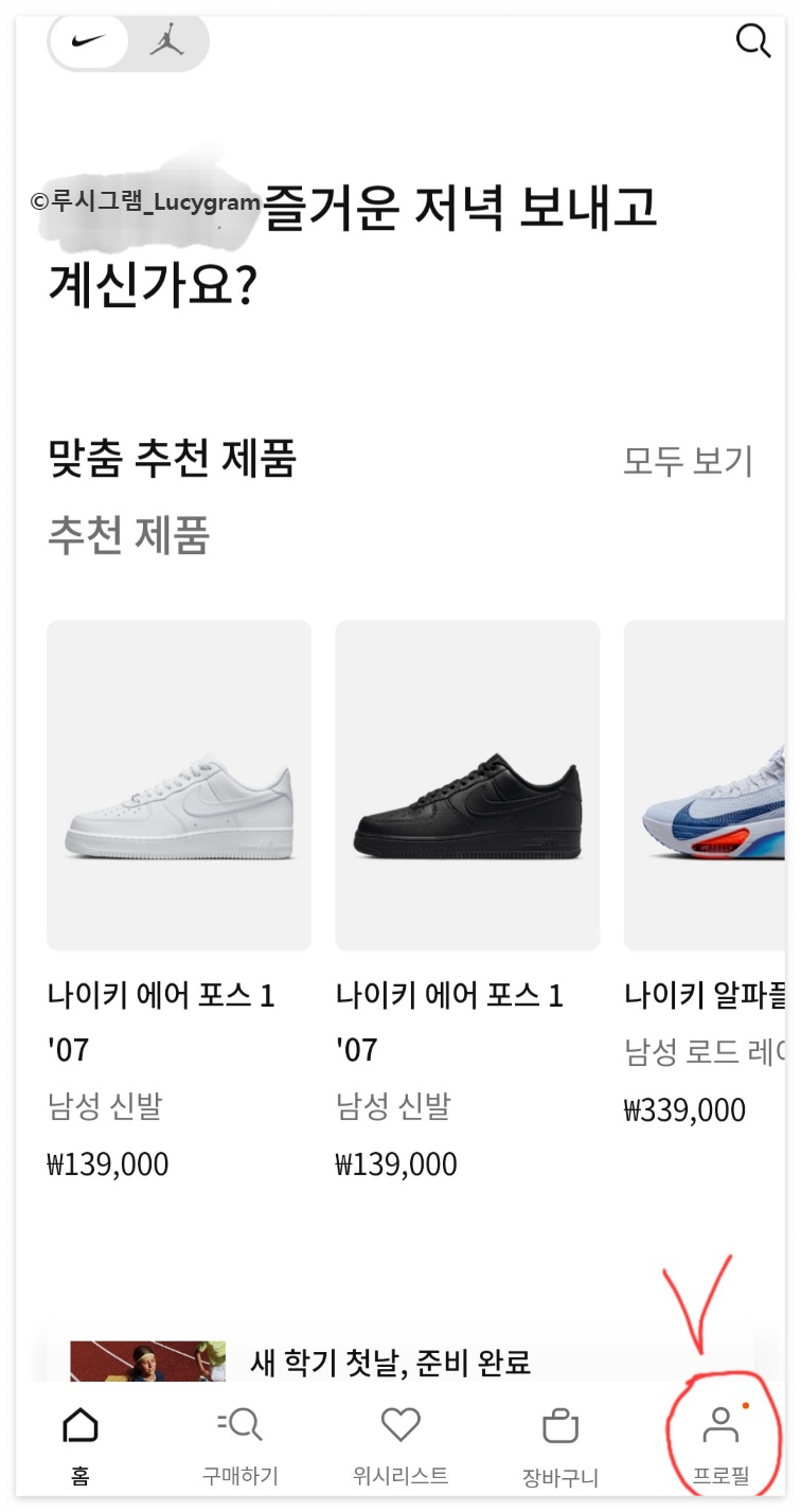 나이키 앱 접속 [프로필] 터치