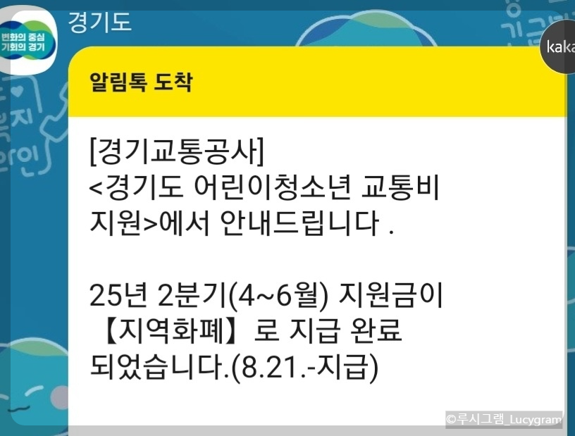 분기별 지원금이 지급되면 카카오톡 알림으로 안내가 와요. 해당 지역화폐 앱에 접속하면 지급된 내역을 바로 확인할 수 있어요.